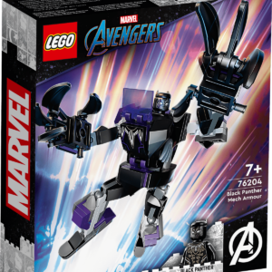 ¡Acción al estilo Marvel de tamaño gigante! La colosal Armadura Robótica de Black Panther cuenta con brazos, piernas y machacadoras garras móviles, y viene acompañada de una minifigura para pilotarla.