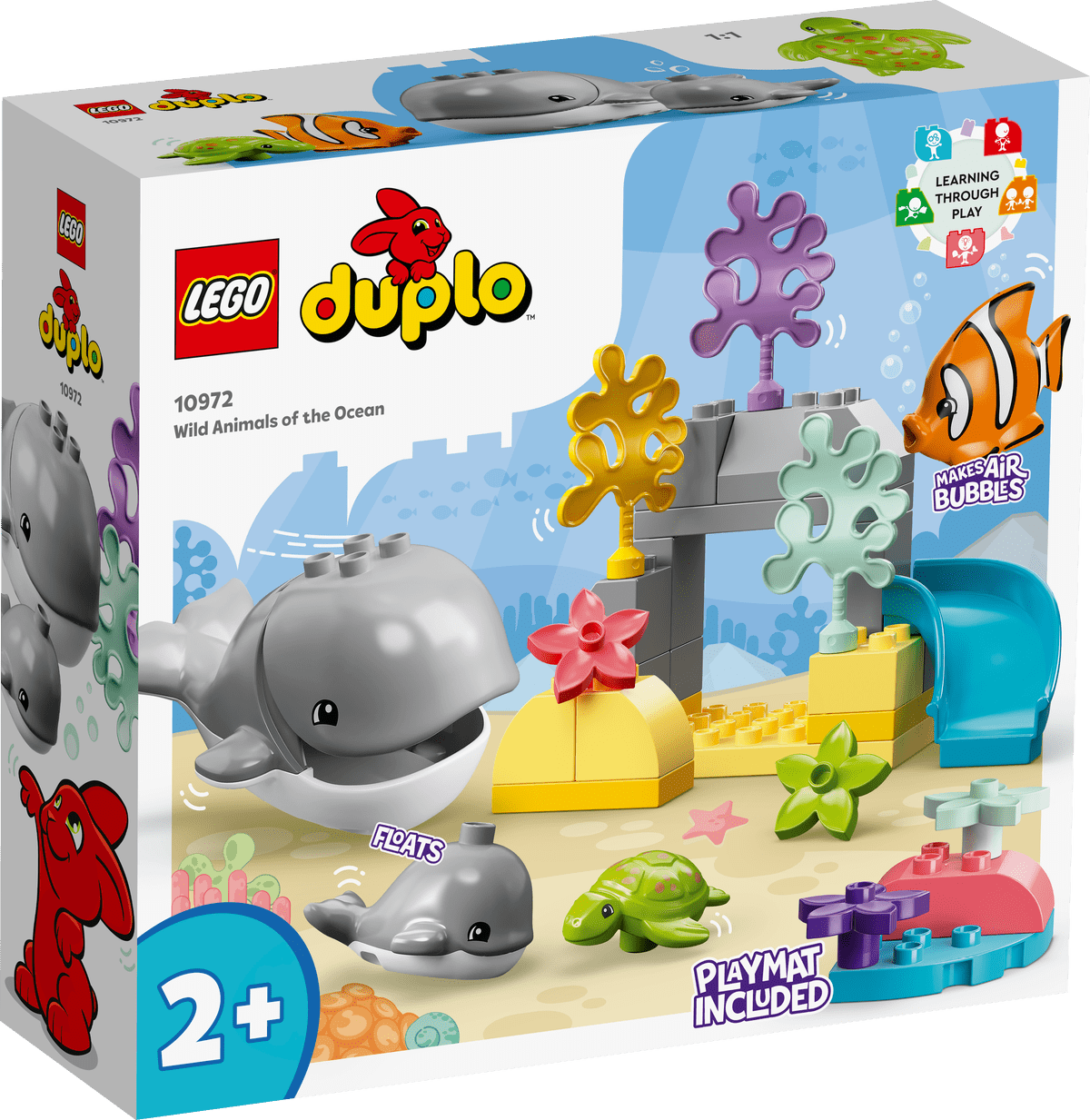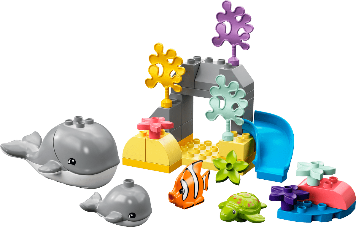 Emprende un viaje imaginario rumbo al fondo del mar con tu pequeño amante de los animales y el set LEGO® DUPLO® Fauna Salvaje del Océano (10972) para mayores de 2 años.Explora la fauna marina y nuevas habilidadesLleva su joven imaginación hasta las profundidades del océano para que conozca a una ballena adulta y un ballenato, un pez tropical y una simpática tortuga en su entorno natural. Además, con un divertido tobogán acuático y un tapete de juego tridimensional plegable decorado con motivos submarinos, tu futuro explorador contará con abundantes estímulos para jugar con fantasía y adquirir habilidades esenciales para su desarrollo.Aprendizaje lúdico para bebésTodos los sets LEGO DUPLO, diseñados por expertos, plantean divertidas historias y cuentan con colores brillantes, personajes diversos y montones de detalles para dar a tu peque de mente curiosa un GRAN comienzo en la vida.