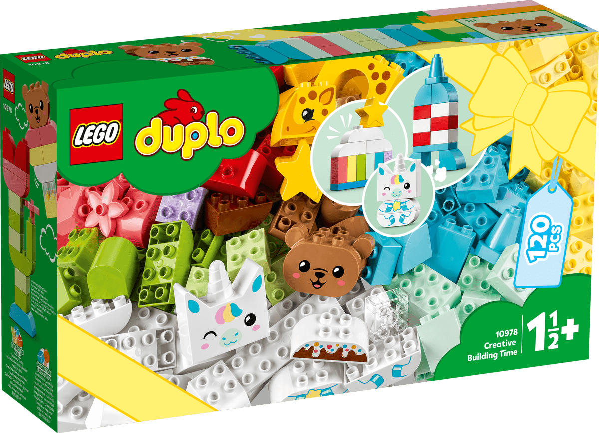 Inicia a tu preescolar de 18 meses o más en la construcción creativa con el set LEGO® DUPLO® Momentos de Construcción Creativa (10978).Animales fáciles de construir y mucho másLos bebés podrán combinar el vistoso surtido de ladrillos para construir objetos que les resultarán familiares, como un cohete, un corazón, una estrella, un pastel, un unicornio, una jirafa y un oso, y pasarlo genial creando un sinfín de modelos más salidos de su imaginación. Con sus coloridas formas y las numerosasmaquetas que se pueden construir con ellas, este atractivo juego permite compaginar sin esfuerzo actividades de descubrimiento que fomentan la adquisición de habilidades y un alegre juego libre.Aprendizaje lúdico para bebésLas mamás y los papás podrán compartir los hitos importantes del desarrollo de su peque con los juguetes LEGO DUPLO, que ponen en las manos de los niños la posibilidad de expresarse, explorar y divertirse jugando como quieran.