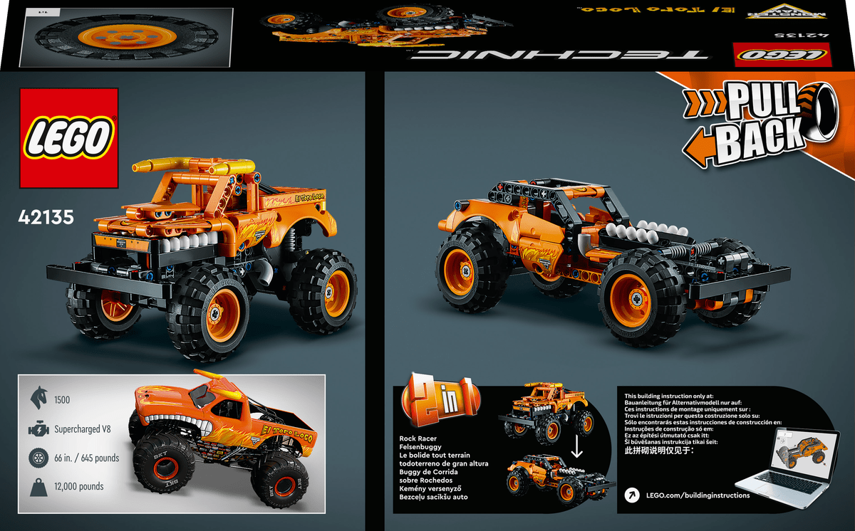 Un emocionante set “2 en 1” para fans de los camiones monstruo, con el camión LEGO® Technic Monster Jam™ El Toro Loco™ convertible en un todoterreno de gran altura.