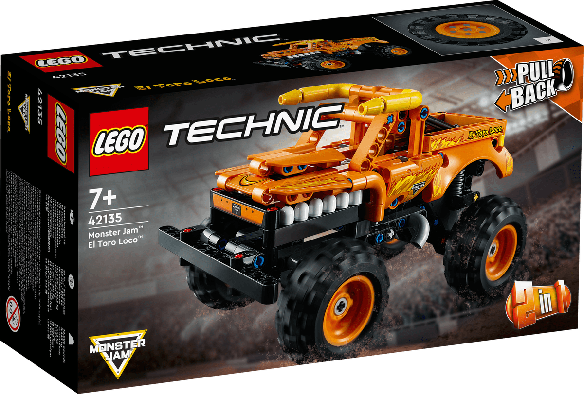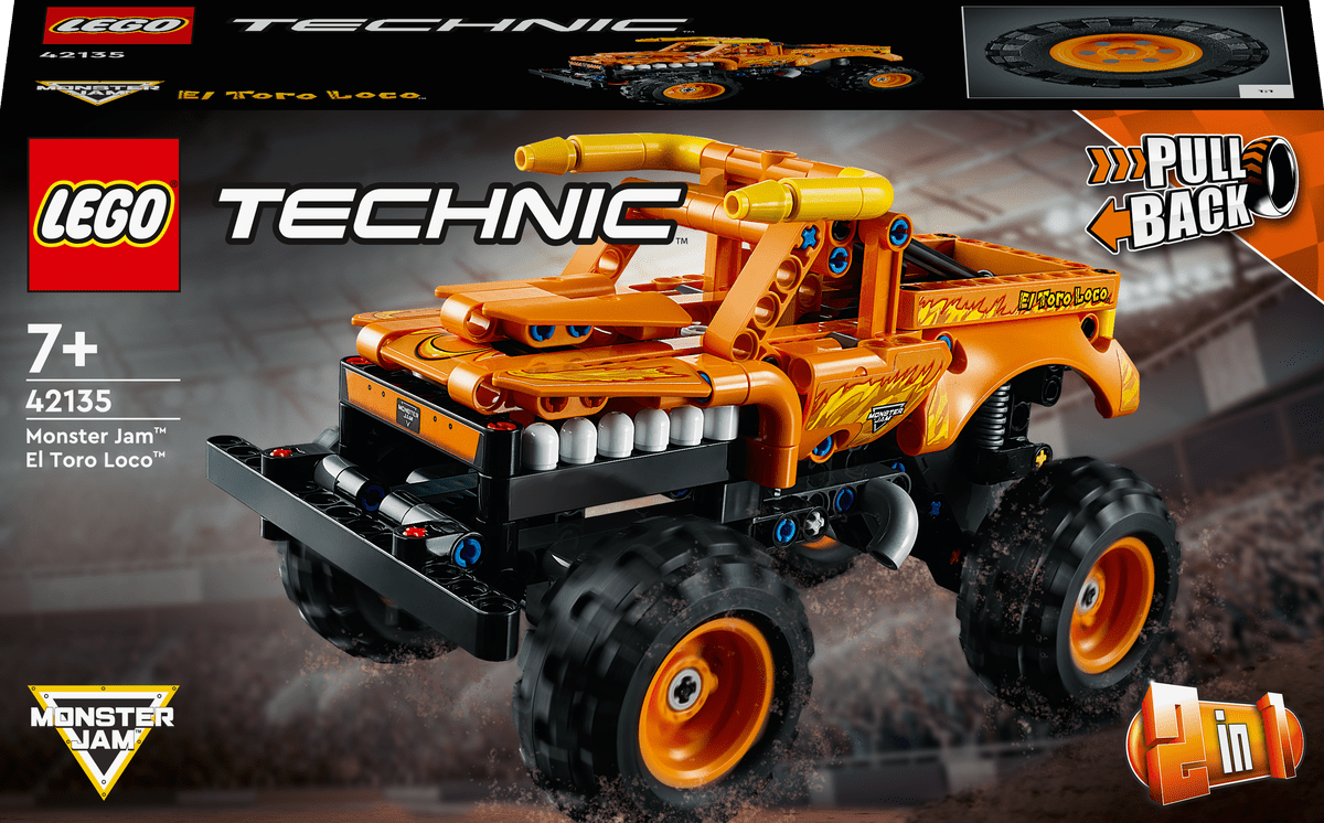 Uno de los camiones de las pistas de Monster Jam™ más icónicos, El Toro Loco™ (42135) siempre da espectáculo. Ahora, los niños a partir de 7 años pueden reproducir su camión monstruo favorito en formato LEGO® con este trepidante juguete para construir. Los fans del célebre camión adorarán los cuernos, el aro de la nariz, los dientes y la decoración de llamas, a imagen del de verdad. Podrán accionar la carga manual para lanzar disparado el camión de juguete o construir rampas para recrear alucinantes trucos.Un juguete “2 en 1” para divertirse durante horasCuando los peques quieran afrontar un nuevo desafío, podrán convertir su camión monstruo en un todoterreno de gran altura de carga manual. Este vehículo de carreras está equipado con una jaula de seguridad en la cabina.Inspiración para los futuros ingenierosCon vehículos que funcionan como los auténticos, los modelos para construir LEGO Technic ofrecen a los fans de LEGO una magnífica introducción a la ingeniería y la mecánica.