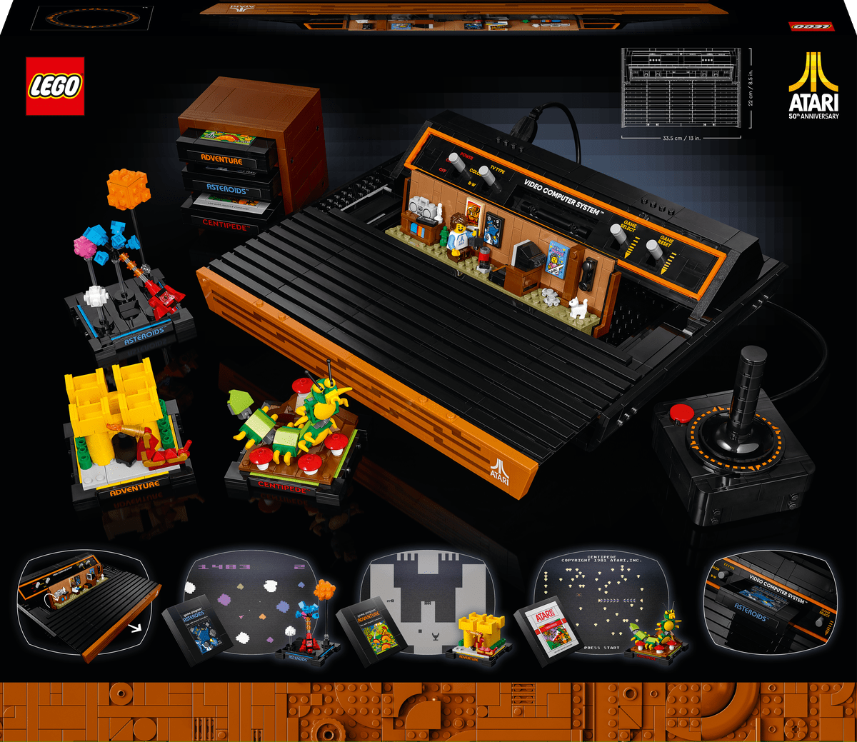 Revive tus partidas favoritas allá por la década de 1980 mientras construyes la consola LEGO® Atari® 2600 con réplicas de cartuchos, minimodelos representativos de algunos juegos y una escena de una habitación retro.