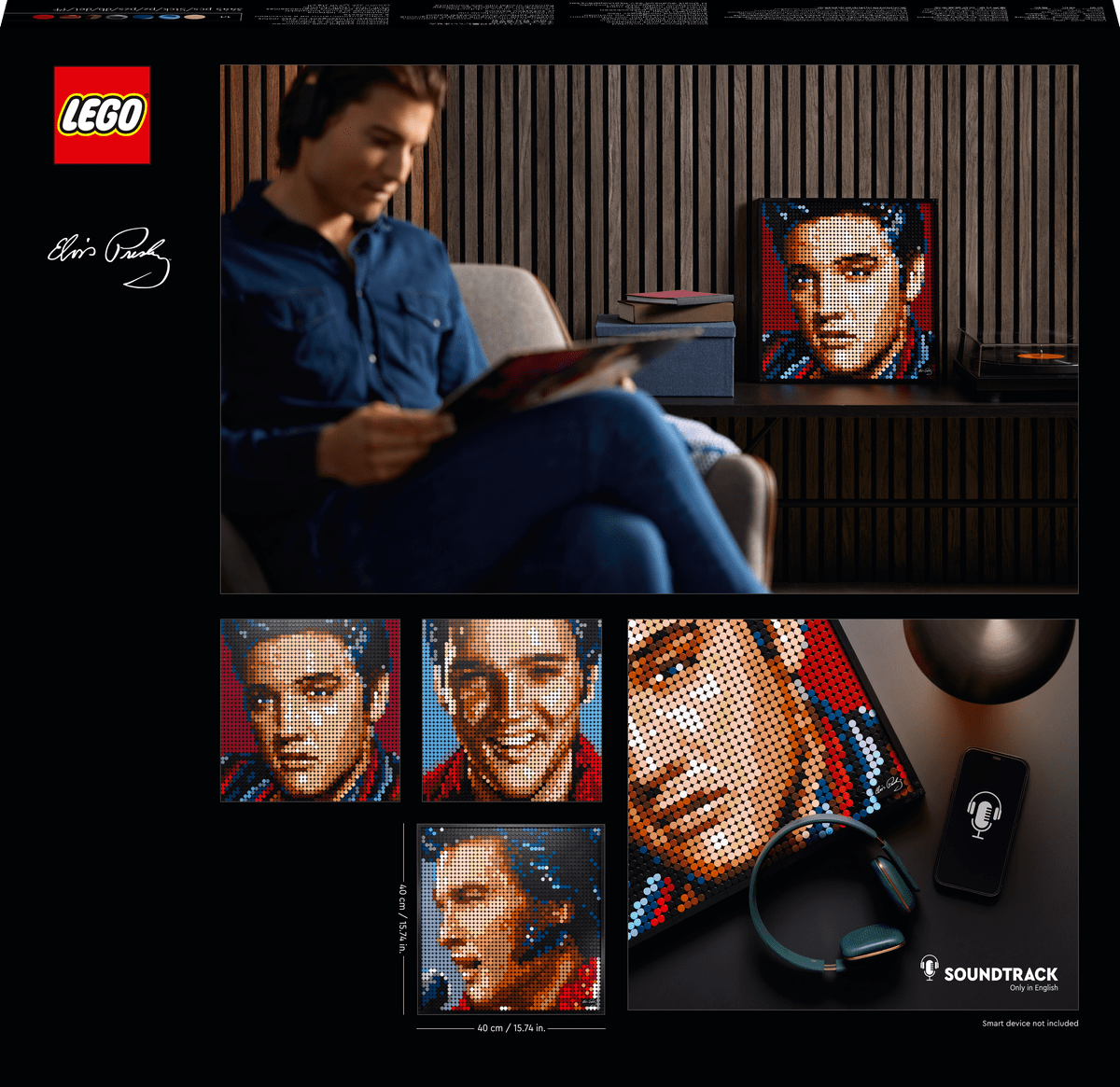 Mueve las caderas con Elvis Presley. Concéntrate en un proyecto lleno de significado y crea 1 de 3 retratos LEGO® Art especiales mientras disfrutas de la banda sonora incluida.
