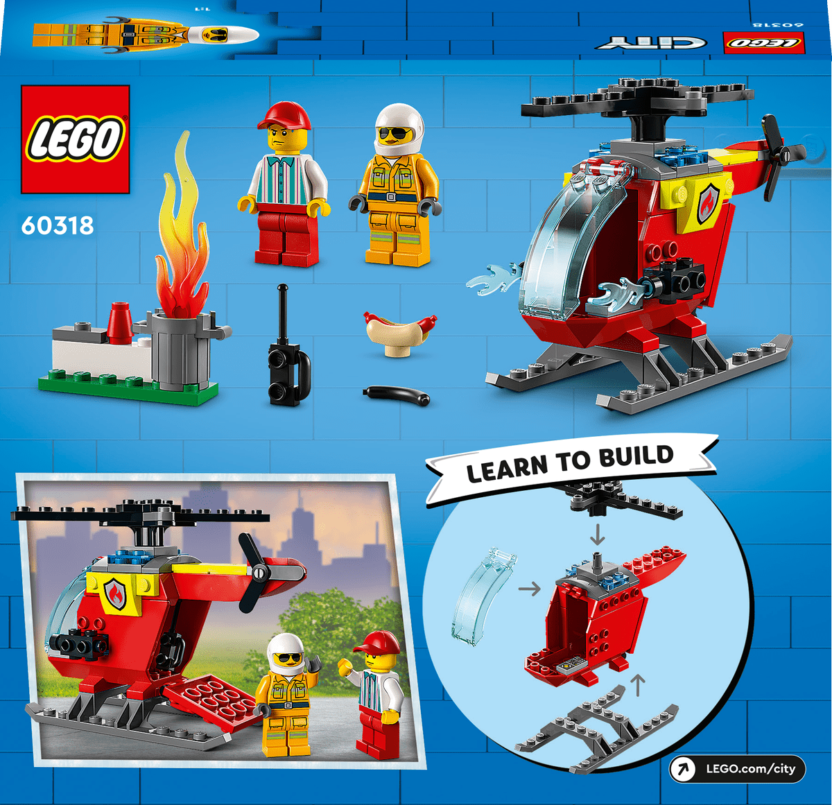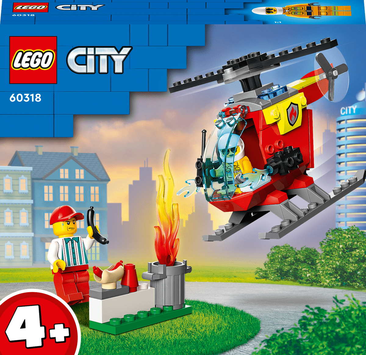¡Descúbrele a tu peque el emocionante mundo de LEGO® City con el juego LEGO City Helicóptero de Bomberos (60318)! Contiene un helicóptero de juguete con compartimento de almacenamiento y rotores, además de minifiguras de un bombero y un vendedor de perritos calientes. Bastará con combinarlos con el cubo de basura, las llamas LEGO y el perrito caliente carbonizado incluidos para dar alas a la imaginación y jugar durante horas.Instrucciones de construcción impresas y digitalesEste set 4+ viene con una guía de construcción ilustrada impresa y un ladrillo para principiantes LEGO: una base preformada de la que partir para construir el helicóptero. Los niños también pueden usar una guía digital interactiva, disponible en la app gratuita Instrucciones de Montaje LEGO, que les permite visualizar, acercar y girar la maqueta mientras la construyen.Explora el mundo jugandoLos sets LEGO City promueven el juego libre e imaginativo basado en héroes cotidianos y situaciones de la vida real.