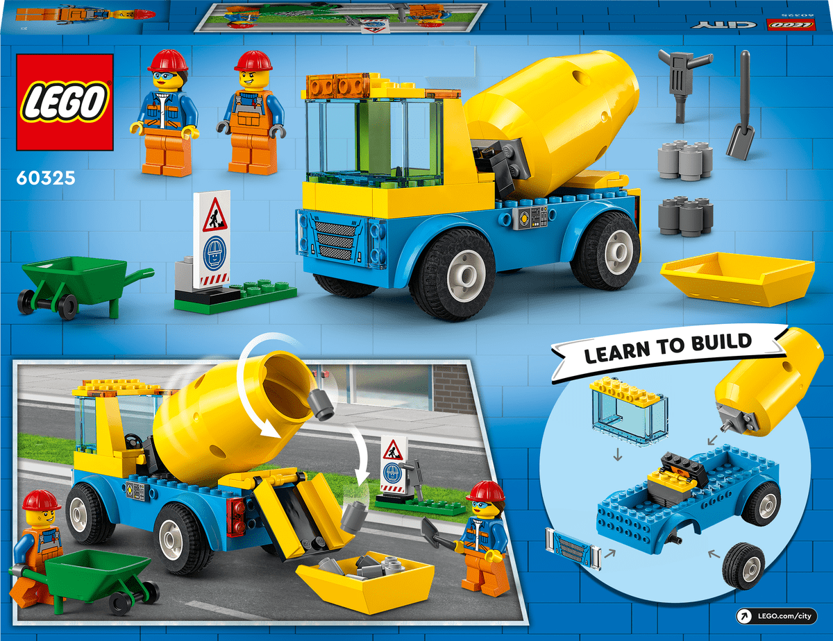 ¡Pon a trabajar la imaginación de tu peque con el Camión Hormigonera LEGO® City (60325)! Este vehículo de obra de juguete, equipado con cabina del conductor que se abre y cuba mezcladora giratoria, viene con un martillo neumático, una carretilla y una señal de juguete. Combínalos con las 2 minifiguras de obreros incluidas para dar paso a largas horas de juego creativo.Diseñado para niños y niñas de 4 años o másEste juego 4+ facilita el proceso de construcción con un chasis para principiantes premoldeado del que partir, una guía ilustrada paso a paso e instrucciones digitales. Disponible en la app gratuita Instrucciones de Montaje LEGO, la guía digital cuenta con intuitivas herramientas de acercamiento y giro que permiten a los niños visualizar la maqueta terminada mientras la construyen.Descubre el mundo jugandoLos peques crecen rodeados de increíbles vehículos y máquinas: con las fieles maquetas de los sets LEGO City Grandes Vehículos, ¡pueden explorarlos de cerca!