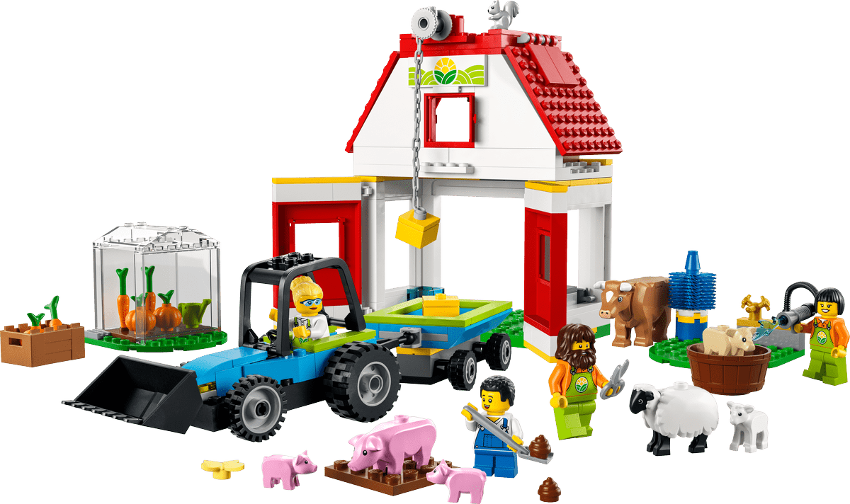 A los fans de los animales de granja les encantará este set 4+, que incluye un granero de juguete, un invernadero, un tractor, un montón de divertidas funciones, simpáticos animales y 4 minifiguras.