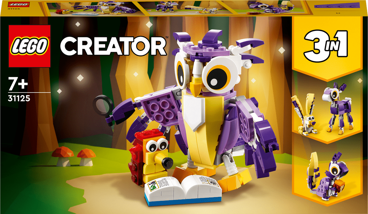 Los peques se internarán en un hermoso bosque de fantasía con este mágico set LEGO® Creator 3en1 y podrán construir un búho, un conejo, un cervatillo o una ardilla.