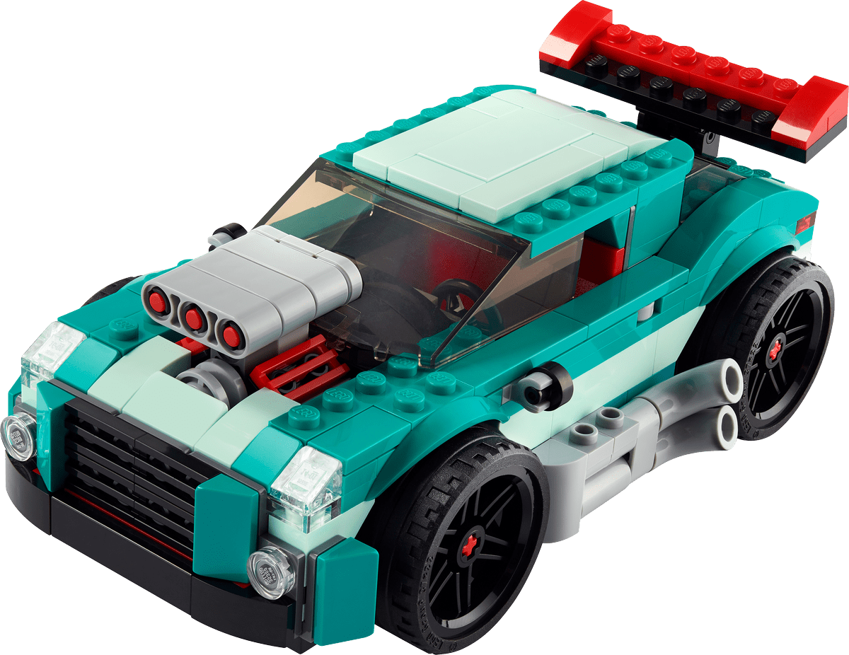 Dale a tu pequeño constructor las llaves del Deportivo Callejero LEGO® Creator 3en1, que podrá convertir en un coche de carreras superrápido o en un automóvil clásico modificado de juguete.