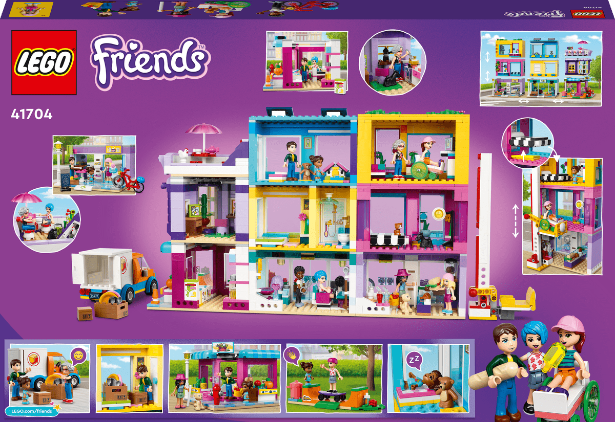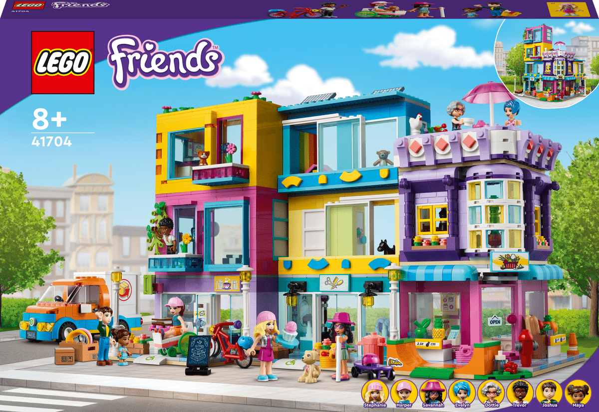 Las fans de LEGO® Friends de 8 años o más adorarán convivir con sus vecinos en el set Edificio de la Calle Principal (41704). Incluye 3 edificios que se unen para formar un barrio con un bloque de apartamentos. Hay una peluquería, un mercado de comida internacional y un café-librería. Como cada elemento es modular, las niñas creativas lo pasarán genial configurando los edificios como quieran. Trae 12 figuras, por lo que existen infinitas posibilidades cuando jueguen a interpretar. Tu peque puedecambiar su imagen con Trevor en la peluquería, pasar el rato en el apartamento de Dottie, hacer trucos con el monopatín junto a Stephanie o sujetarle la puerta a Harper mientras entra con su silla de ruedas en el café.Construir es parte de la diversiónToda la familia se divertirá construyendo esta gran maqueta de 1682 piezas que lucirá ideal en cualquier dormitorio. Presenta a tu pequeña constructora la acogedora comunidad de LEGO Friends, donde todas las niñas se sentirán como en casa.