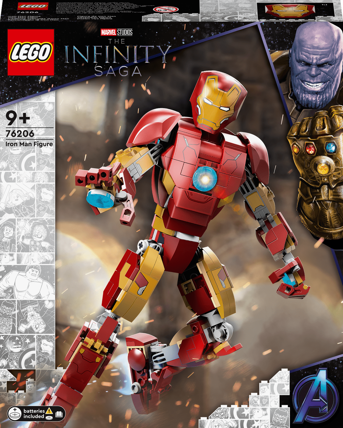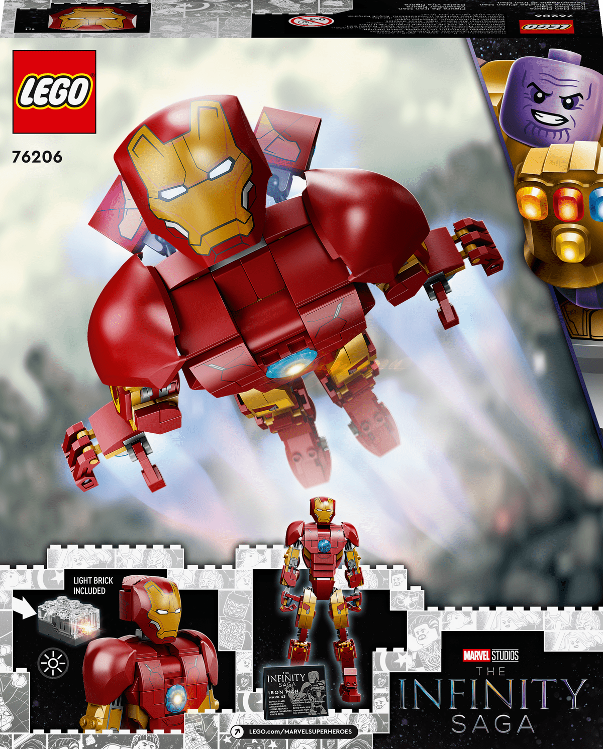 Hazle a tu fan de Iron Man de 9 años o más el mejor regalo de todos: su propio Iron Man. Con una altura aproximada de 24 cm, el juguete construible portátil LEGO® Marvel Figura de Iron Man (76206) trasladará la autenticidad de las películas de Marvel a las trepidantes aventuras de los peques.Como si fuera la de verdadBasada en el personaje de Iron Man de Vengadores: La Era de Ultrón, el éxito de Marvel Studios, esta realista recreación completamente articulada permite a los niños colocar la figura LEGO Marvel en diferentes posturas mientras luchan en emocionantes misiones. El ladrillo con luz que se acciona al pulsar un botón ilumina el reactor ARC del torso de Iron Man, aportando más realismo. Cuando no esté salvando el universo, la maqueta de Iron Man quedará genial expuesta e incluye una placa decorativa desmontable con detalles sobre el icónico Vengador blindado. La app gratuita Instrucciones de Montaje LEGO contiene una guía digital para visualizar, acercar y girar la maqueta.