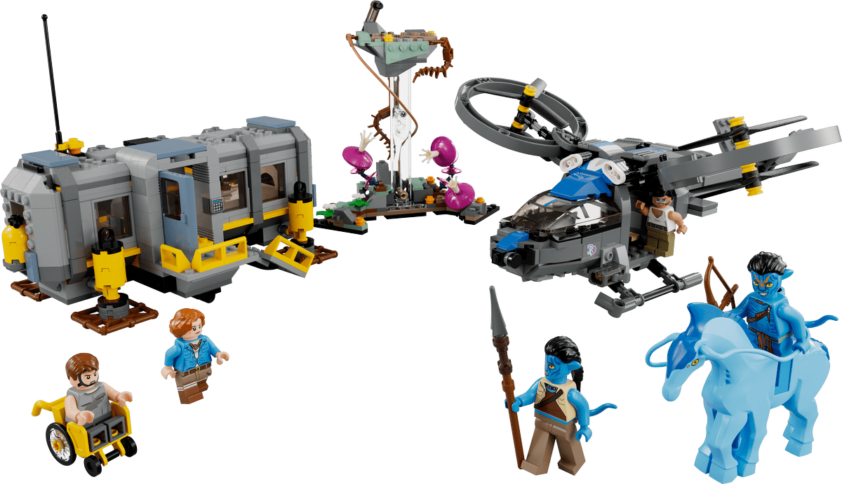 Inspira a tu peque con un set LEGO® Avatar que incluye un helicóptero, el laboratorio del Sector 26, 5 minifiguras, una figura de un Direhorse y un modelo con elementos que brillan en la oscuridad.